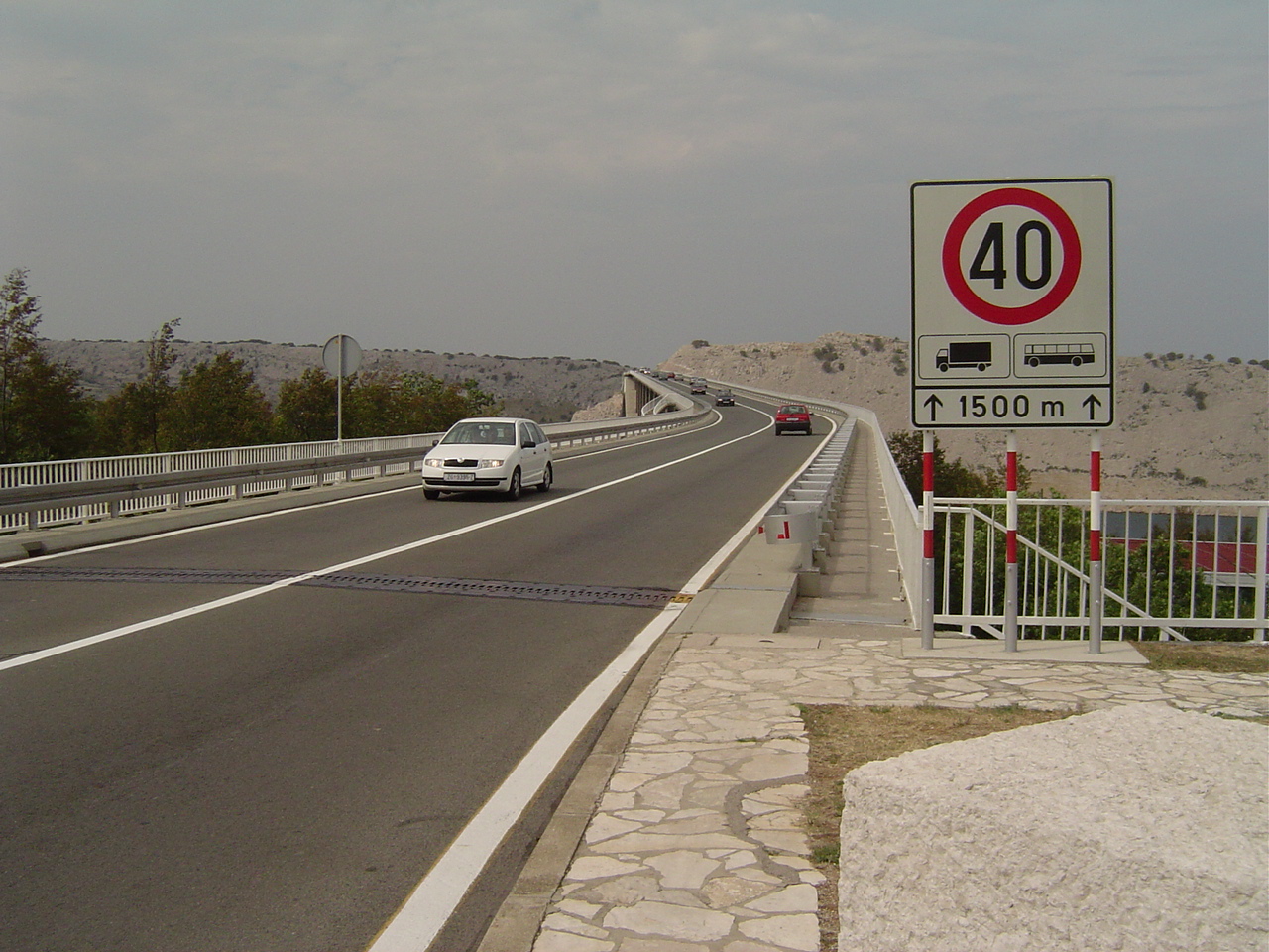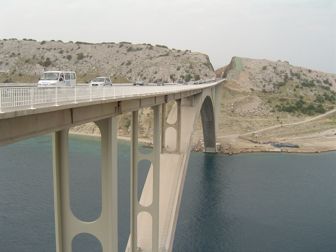 | Most je grajen tako, da koristi še manjši otok in tako lažje premaga razdaljo do Krka. |