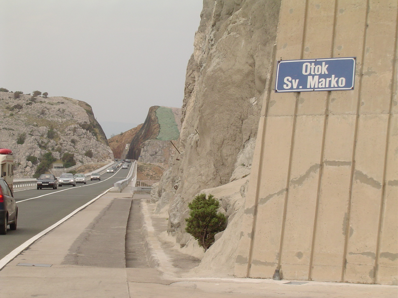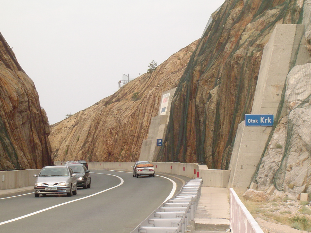 | Na Krk pripelje cesta, ki je izdolbena med skalami. |