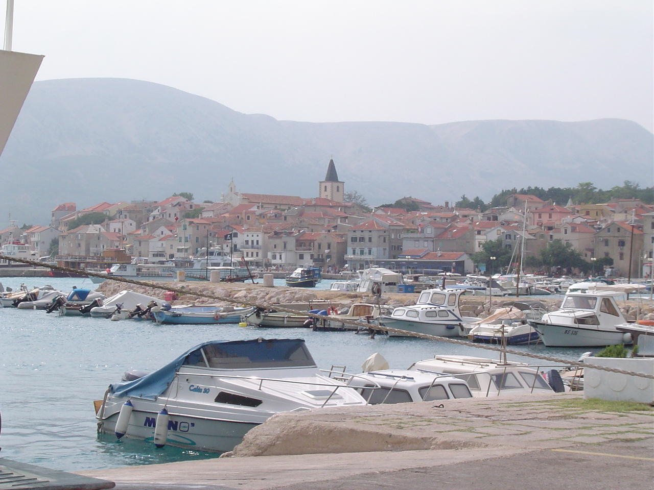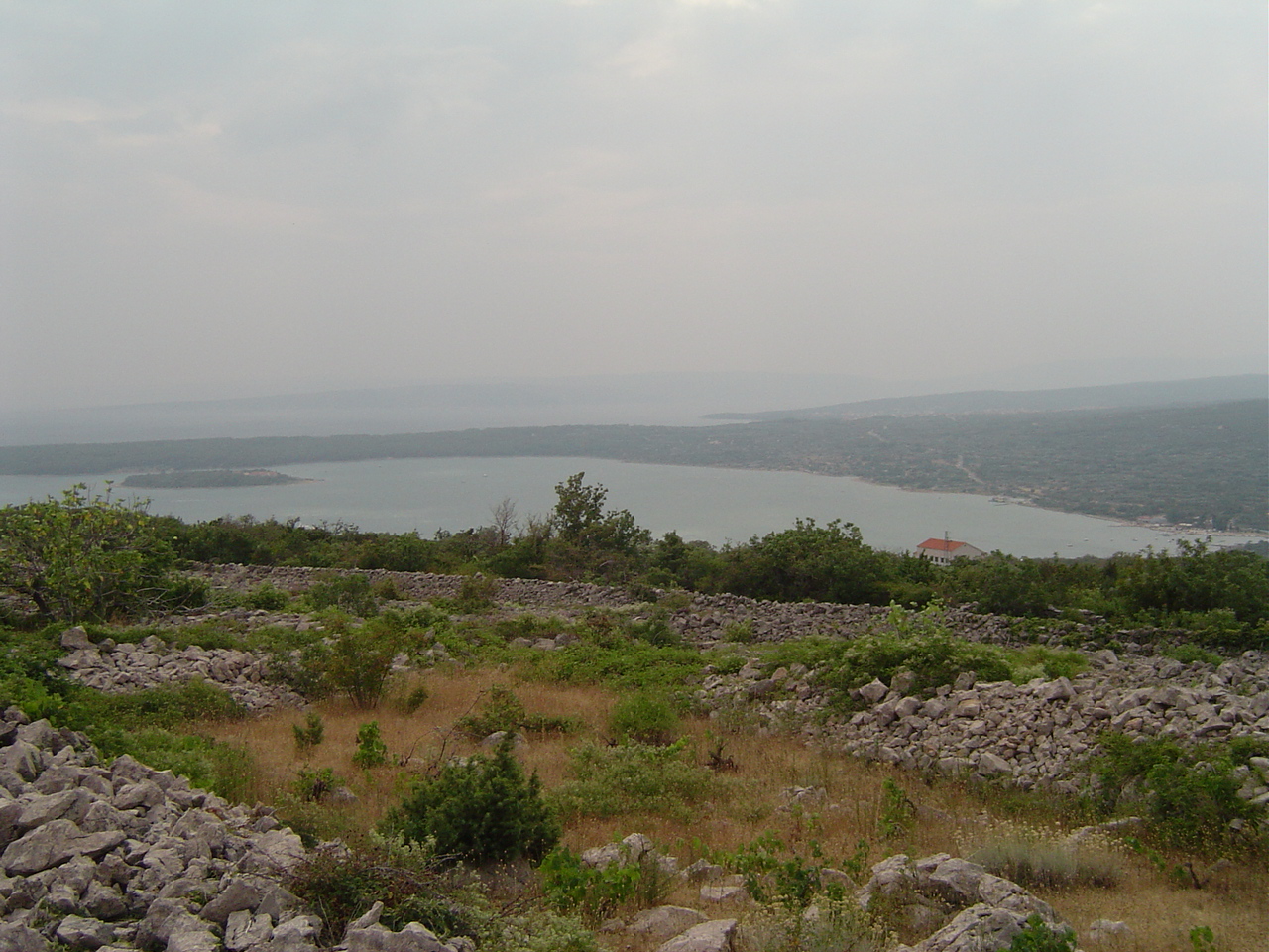| Kraj na skrajnem jugu Krka, od koder pluje trajekt na Rab. |