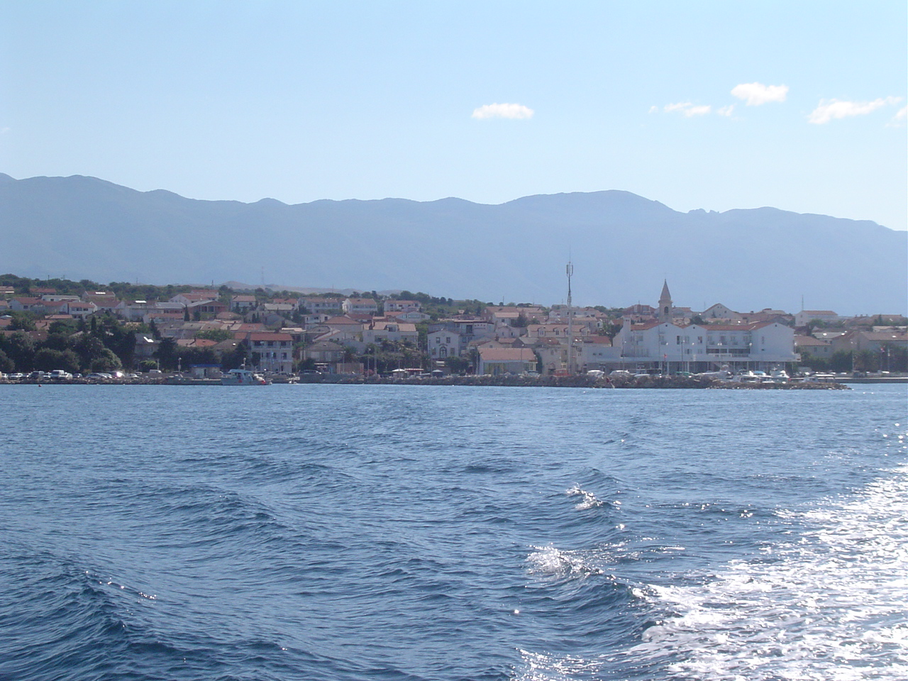 | Pogled na Paški zaliv, ki je videti kot jezero znotraj otoka. |