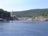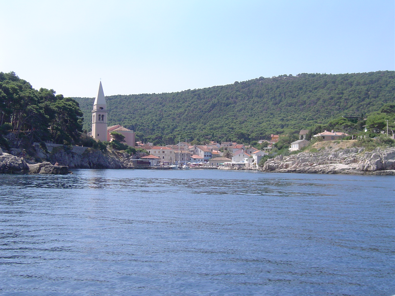 | Pogled na mesto Veli Lošinj, ki se je odprl, ko je ladja zavila v zaliv. |
