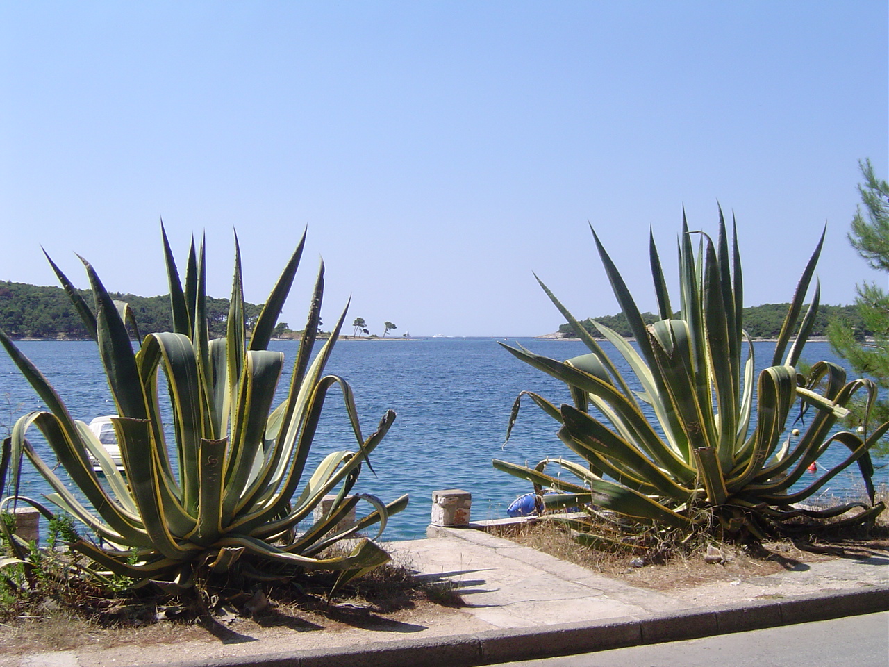 Krasijo ga kaktusi agave, morje pa je kristalno čisto. |