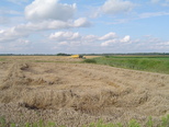 | V Prekmurju, kjer je ravninski svet, so obširna polja, ki jih obdelujejo z velikimi stroji. |