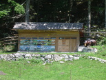 | Tale čebeljnjak pa se mi je zdel zelo zanimiv, saj ima prav umetniško poslikane panjske končnice. |