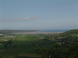 | Ob državni meji s Hrvaško vodi cesta v klanec, s katerega se odpre pogled na dolino reke Dragonije in na Sečoveljske soline. |