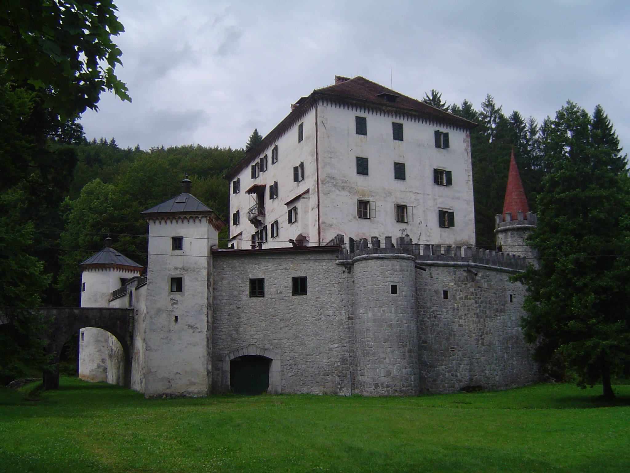 | Ko sem se spustil s Snežnika, sem spoznal, da sem na nekem križišču zgrešil in prišel v dolino severneje, kot sem nameraval. Vendar ni mi žal, saj sicer ne bi mogel videti tega zanimivega gradu in parka ob njem. |