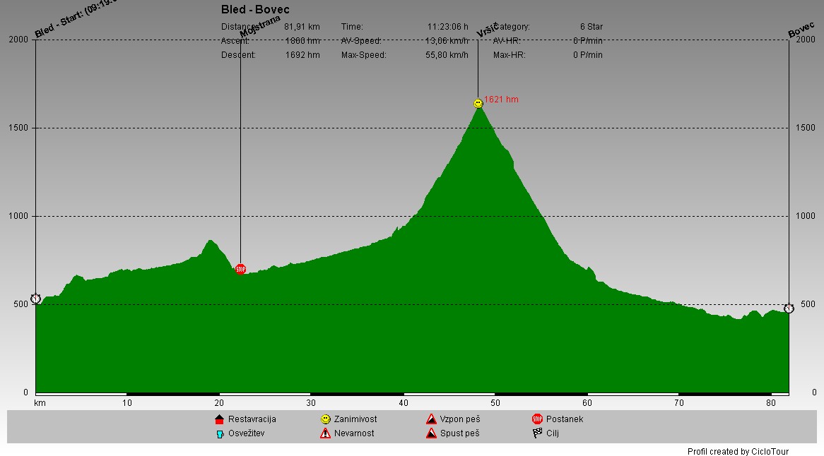 Z Bleda sem se najprej zapeljal po dolini Radovne, kjer se je rahlo vzpenjalo, do Mojstrane. Sledila je pot po nekdanji železnici do Kranjske Gore, nato pa vzpon na Vršič.