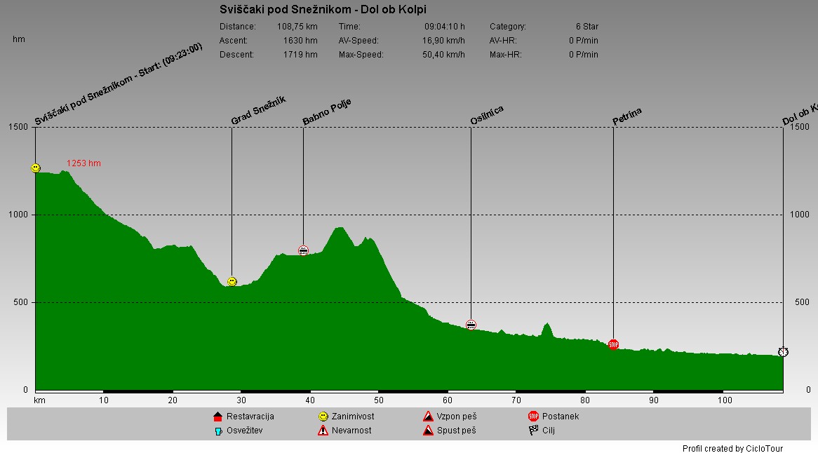 | Izpod Snežnika sem se spustil po makadamski gozdni cesti do gradu Snežnik. Po 200 metrskem vzponu sem prišel do Babnega Polja, kjer sem ponovno prestopil mejo in se po prelazu v Gorskem kotarju spustil vse do Kolpe. Po slovenski strani sem nato nadaljeval do Dola ob Kolpi, kjer sem se ustavil v kampu, da bi prenočil. |
