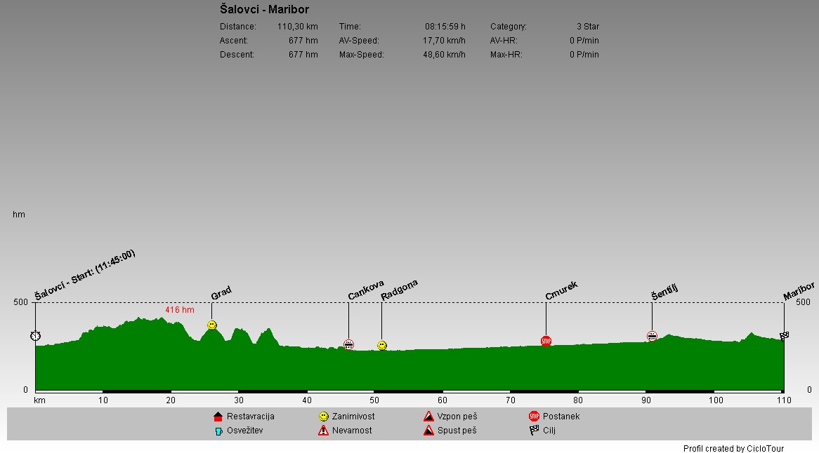 Zadnji dan sem se popeljal še po Goričkem z vzhoda na zahod, ustavil pa sem se pri gradu Grad. Že v Prekmurju sem prestopil mejo in se po Avstriji po označenih kolesarskih stezah pripeljal do mejnega prehoda Šentilj. S tem sem si prihranil obilo vzponov po Slovenskih goricah.