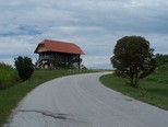 S Celja sem pot nadaljeval po vaški cesti, kjer me je pozdravil ta kozolec.