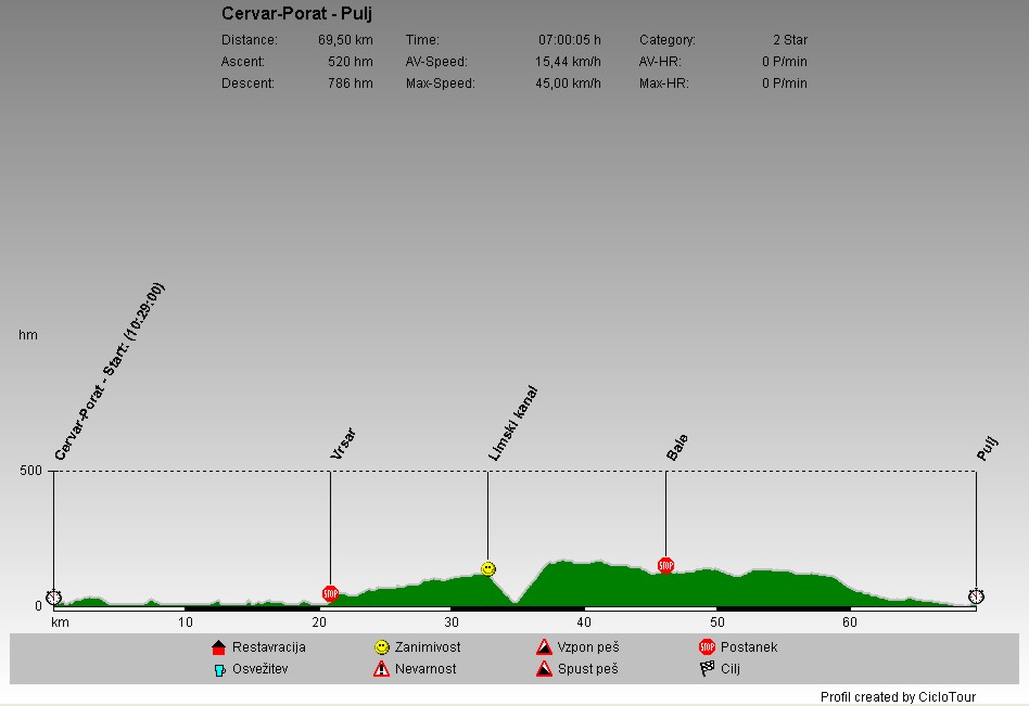 | S Červar-Porat sem se večji del ob obali pripeljal do Poreča, nato pa tako nadaljeval še nekaj kilometrov. Od Vrsarja sem se zapeljal mimo Limskega kanala preko Bal v Pulj. |